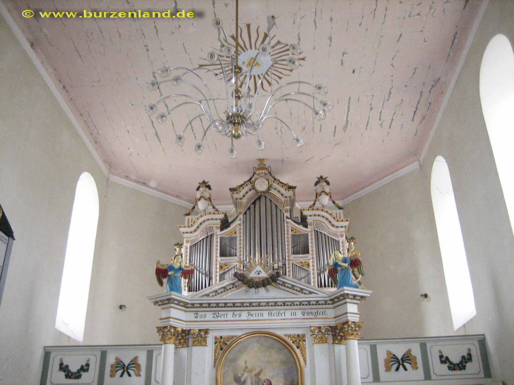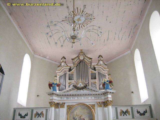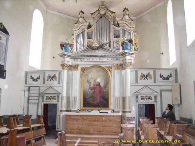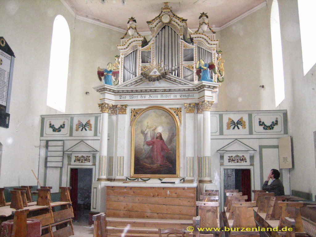 Die Kanzel stammt aus dem Jahre 1806 und ist im klassizistischen Stil gehalten. Der Baldachin ist mit Pflanzenmotiven, einer Taube und einem Goldkreuz geziert. Die neue Orgel wird 1810 von Johann Thois aus Rosenau am Ostende, über dem Altar eingebaut. 1874 wird die Orgel von Johann Schneider aus Kronstadt repariert und 1898 vom Kronstädter Karl Einschenk gründlich instandgesetzt. Der Altar wird 1816 vom Bildhauer Andreas Eisler neu gefertigt. Er besteht aus einem holzverkleideten Ziegeltisch, aus dem Schrein und klassizistischer Holzumrahmung. Das Altarbild -Der Heiland im Gebet vor Gott- wird 1869 von dem bekannten Maler und Kunsterzieher Carl Dörschlag aus Hermannstadt gemalt und von C. Schöpfer aus Kronstadt in einem vergoldeten Rahmen in die Altarnische eingesetzt. Das Hauptbild ist von klassizistischen Säulen flankiert.