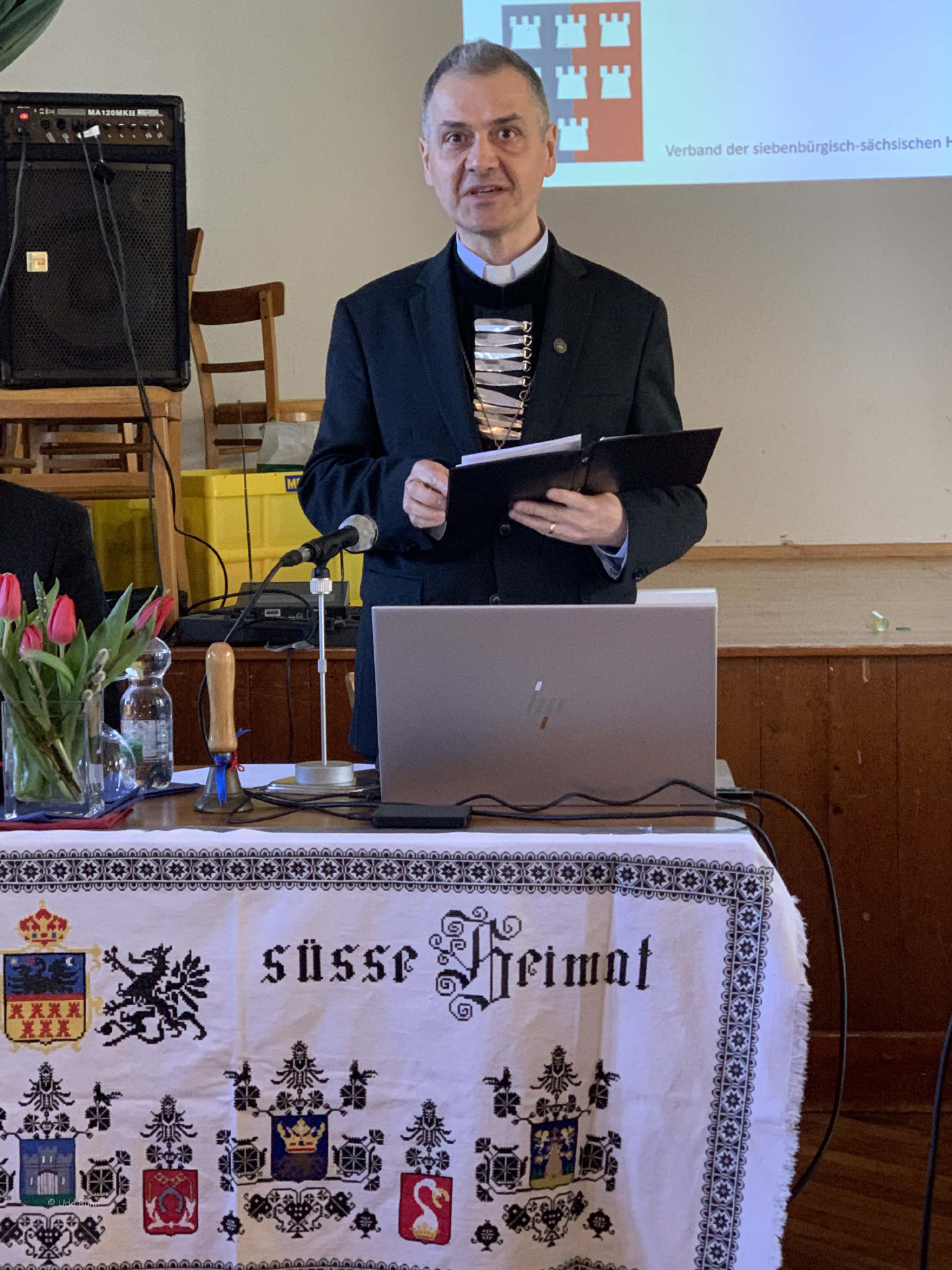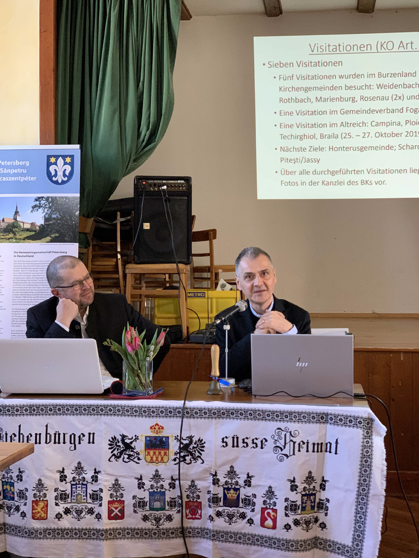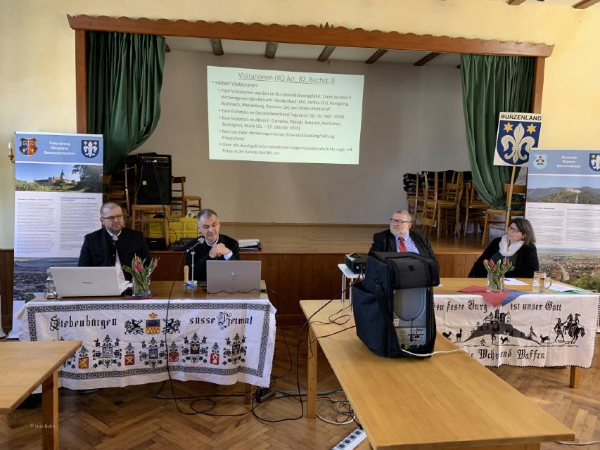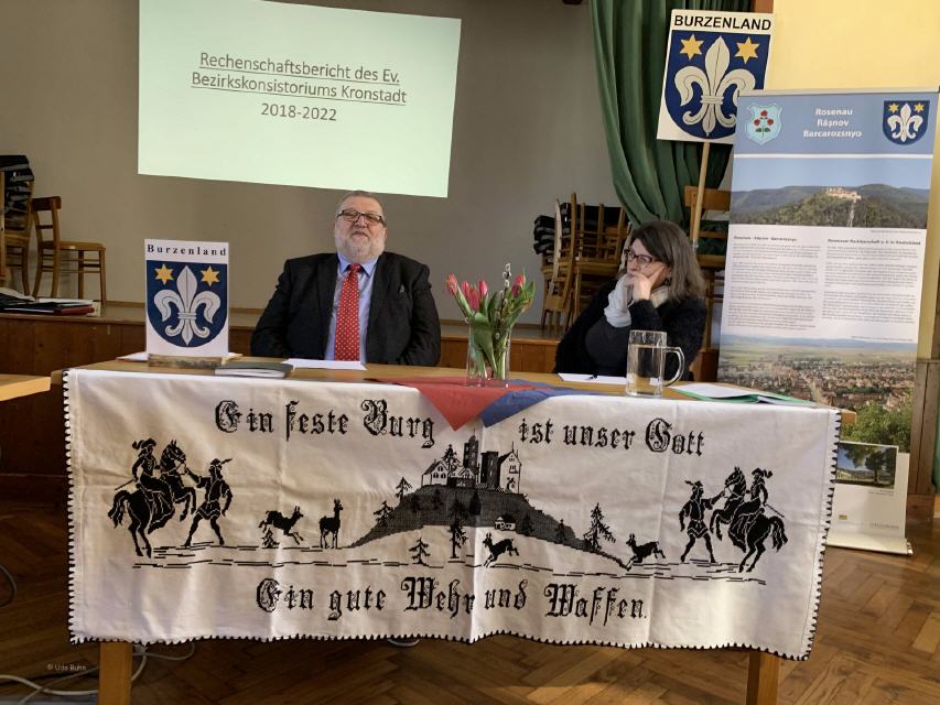 Einen authentischen Rechenschaftsbericht der letzten vier Jahre im Kirchenbezirk Kronstadt legte Bischofsvikar und Dechant Pfarrer Dr. Daniel Zikeli ab. In dieser Zeitspanne erfüllten sich 100 Jahre seit der Gründung der Evangelischen Kirche A.B. in Rumänien (EKR). Pfarrer Dr. Zikeli unternahm mit uns einen Streifzug durch viele evangelische Kirchen Rumäniens und regte an, Verantwortung für den Kirchenschatz in Siebenbürgen zu übernehmen.