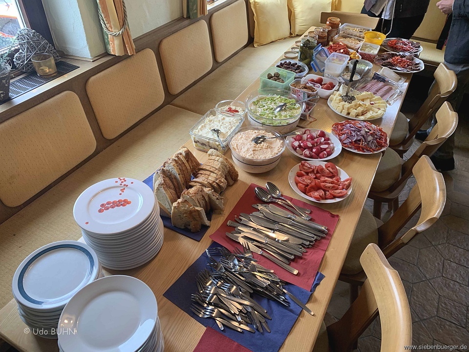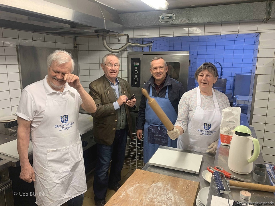 Das Kulinarische kam auch nicht zu kurz. Nachdem bei der vorigen Tagung der Workshop „Baumstriezel backen leicht gemacht“ stattgefunden hatte, ließ es sich Karl-Heinz Brenndörfer, Ehrenmitglied der Regionalgruppe, nicht nehmen, uns wieder mit vor Ort gebackenem Baumstriezel zu verwöhnen. Renate und Helfried Götz hatten das Zubereiten des traditionellen Flekens übernommen.