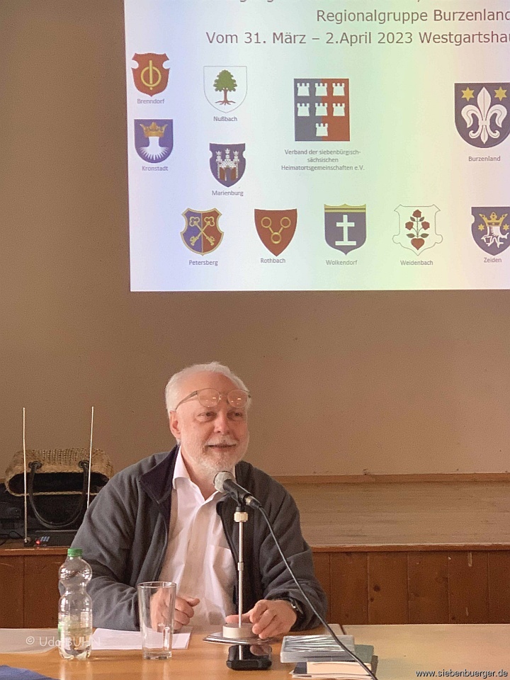 Rainer Lehni, Bundesvorsitzender des Verbandes der Siebenbürger Sachsen, ging auf das Programm des Heimattages ein. Das diesjährige Motto: „Miteinander schafft Heimat“. Die HOGs des Burzenlandes werden, begleitet von zwei Burzenländer Blaskapellen, am Pfingstsonntag am Umzug teilnehmen.