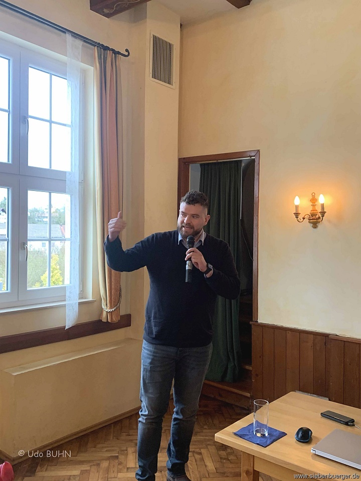 Studienleiter Gustav Binder bot in seinem Vortrag zum Thema „Vereine und Verbände der Siebenbürger Sachsen in Deutschland“ einen Überblick über die unzähligen siebenbürgischen Organisationen, die seit dem zweiten Weltkrieg gegründet wurden. Auf die Frage: „Kann es sein, dass es zu viele Vereine gibt?“, kam prompt die Antwort: „Nein! Eine ausgeprägte Zivilgesellschaft zeichnet sich durch Ausdifferenzierung aus. Es gibt so viel zu tun…So muss man Schwarmintelligenz nutzen. Jeder macht und schafft dort, wo es ihm wichtig ist, wo er etwas bewegen und verändern kann.“