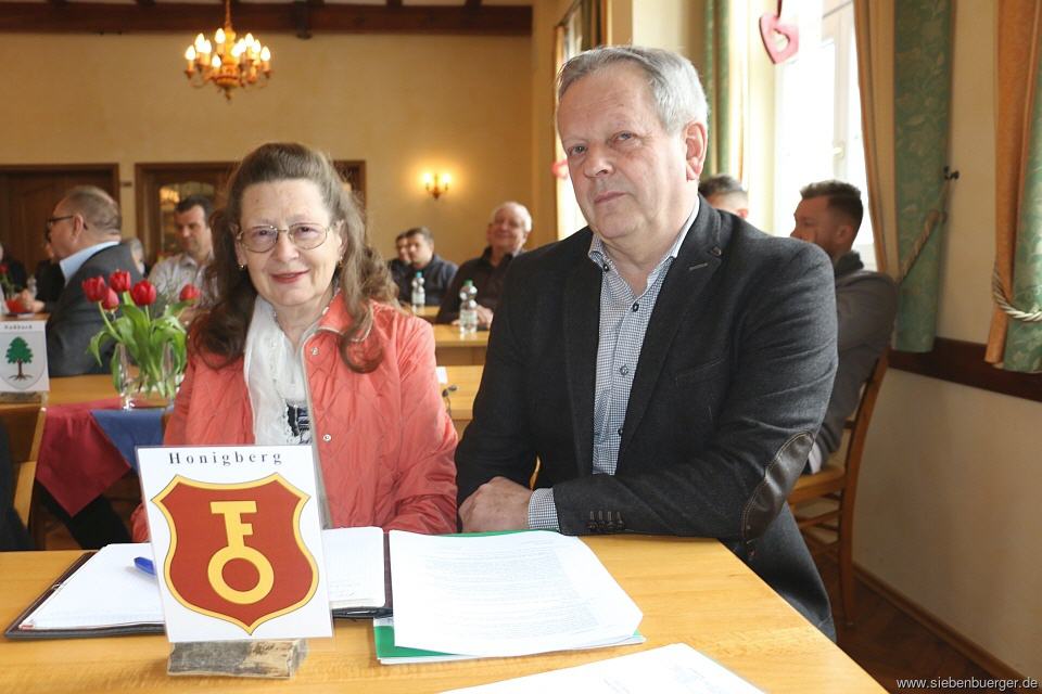 Dr. Horst Müller, stellvertretender Vorsitzender des HOG-Verbandes, überbrachte beste Grüße seitens des Vorstandes und zeichnete zwei verdiente Amtsträger mit der Silbernen Ehrennadel des HOG-Verbandes aus: Doris Martini, stellvertretende Sprecherin der Burzenländer Regionalgruppe und stellvertretende Vorsitzende der HOG Wolkendorf, sowie Klaus Foof, Kassenwart der Regionalgruppe und stellvertretender Vorsitzender der HOG Nußbach. Sichtlich gerührt dankten beide. Klaus Foof fügte hinzu: „Eine Ehrung bekommt man nie allein, da steht immer die Familie und eine HOG dahinter.“