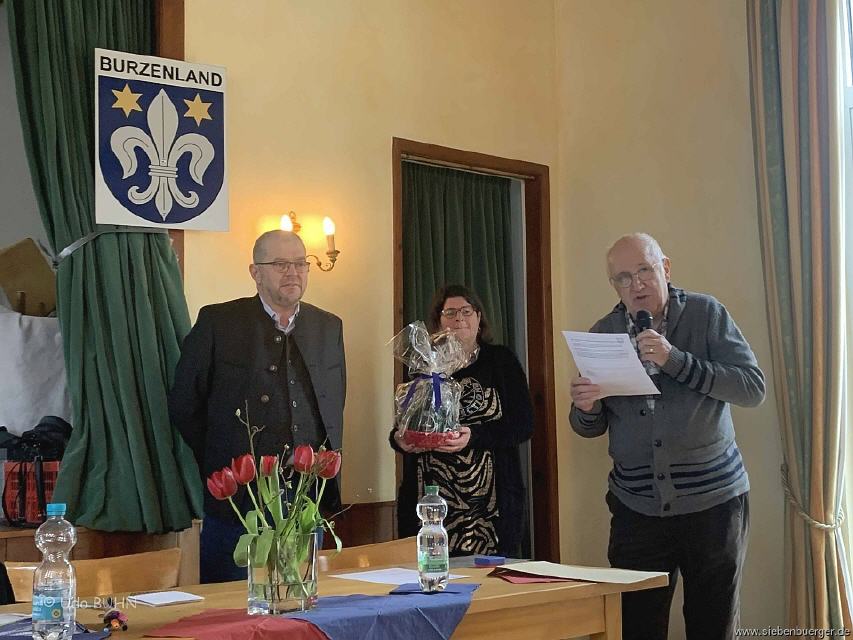 Bei den Wahlen wurde Manfred Binder (Petersberg) als Sprecher der Burzenländer Regionalgruppe bestätigt, genauso Doris Martini (Wolkendorf) als stellvertretende Regionalgruppensprecherin und Klaus Foof (Nußbach) als Kassenwart. Neu gewählt wurde Angelika Schnabel (Neustadt) als Schriftführerin – sie bekleidet dieses Amt kommissarisch seit einem Jahr.