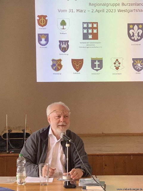 „Wo befreundete Wege zusammenlaufen, da sieht die ganze Welt für eine Stund’ wie Heimat aus.“ Mit diesem Zitat von Hermann Hesse eröffnete Regionalgruppensprecher Manfred Binder die Tagung. Nach einer freudigen Begrüßungsrunde wurden die Referenten vorgestellt. Ralf Sudrigian, Redakteur der Karpatenrundschau, war mit seiner Partnerin aus Kronstadt angereist. Von der Bildungs- und Begegnungsstätte „Heiligenhof“ in Bad Kissingen war Studienleiter Gustav Binder gekommen. Doris Martini, stellvertretende Sprecherin der Regionalgruppe, Rainer Lehni und Udo Buhn, Nachbarvater bzw. Altnachbarvater der Zeidner Nachbarschaft, hatten ebenfalls Referate vorbereitet.